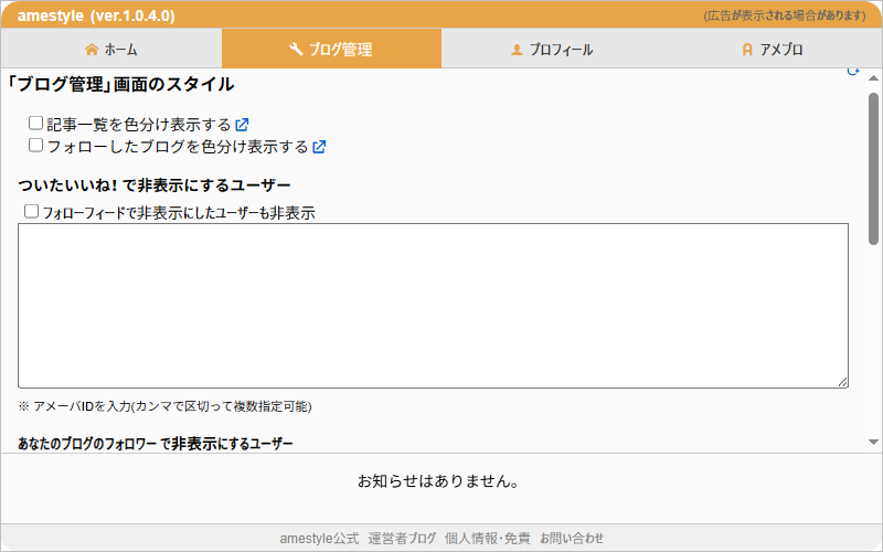 - ブログ管理・アメブロで「ついたいいね!」で特定のユーザーを非表示にする機能を追加